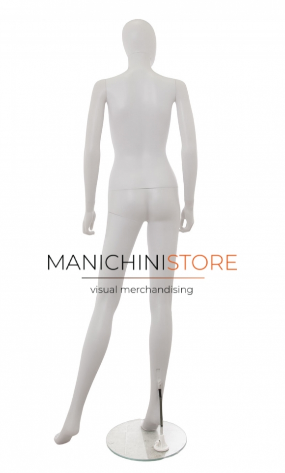 Bellissimo manichino donna realizzato interamente in plastica bianca riciclabile al 100%.