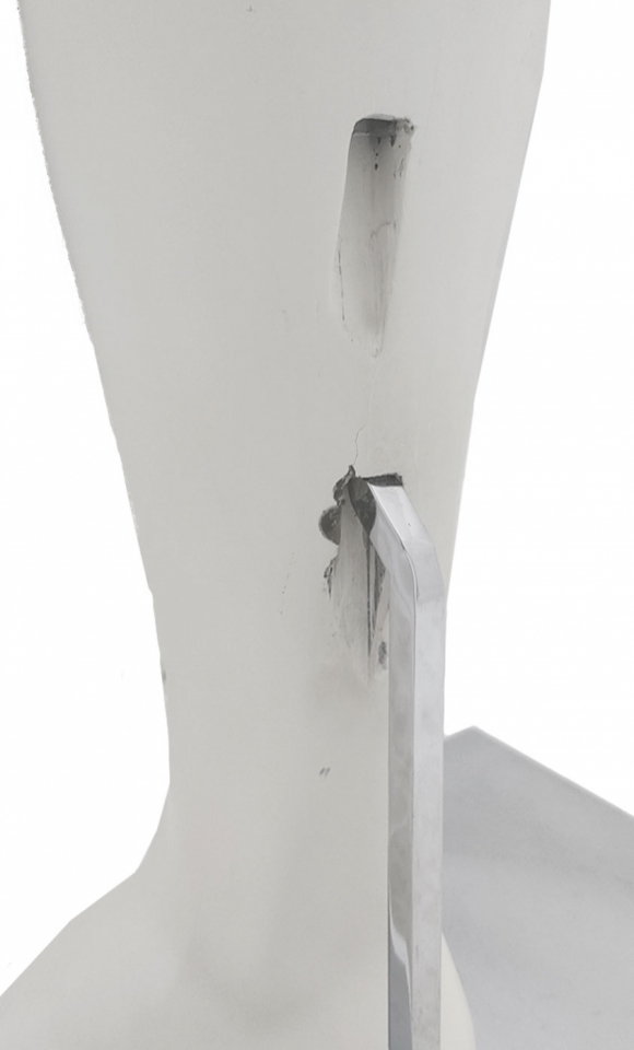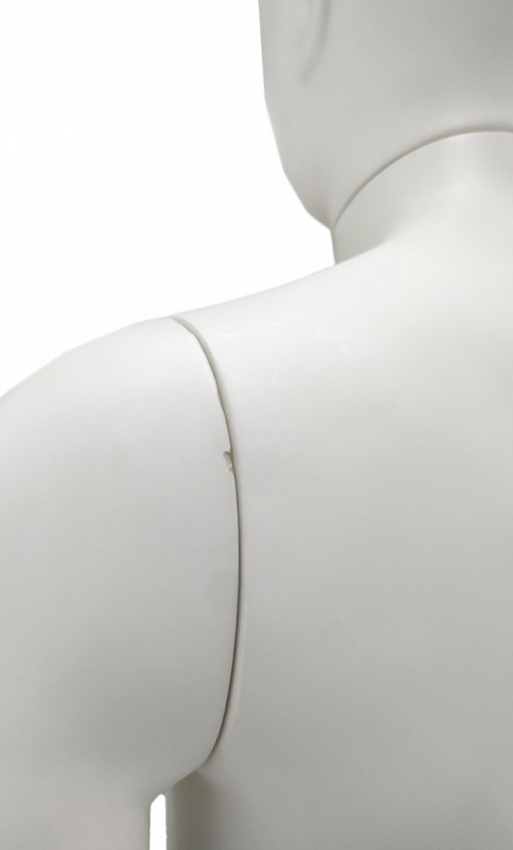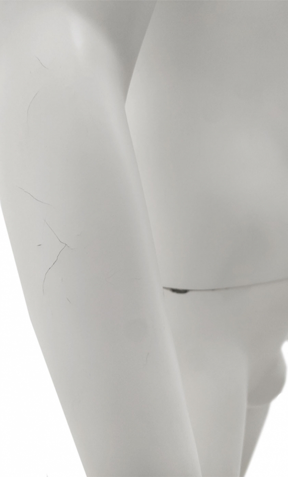 Il manichino presenta difetti e piccole crepe e la base ha dei graffi (vedi immagini di dettaglio).