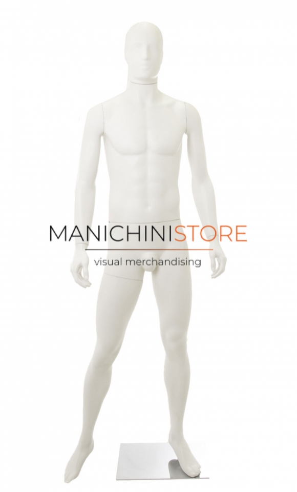 Manichino uomo BONAVERI dalla testa stilizzata, realizzato in vetroresina e con una verniciatura opaca.