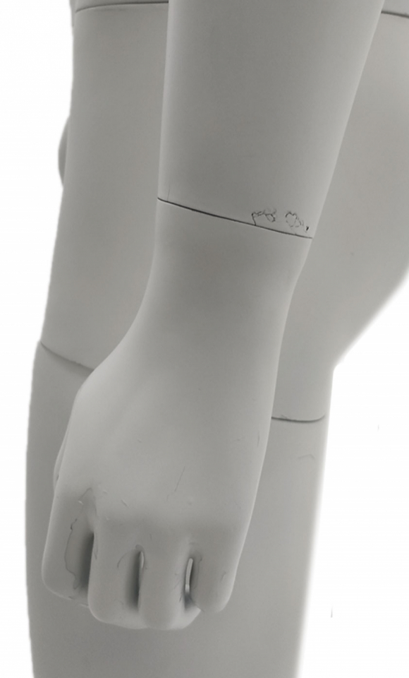 Il manichino presenta imperfezioni di verniciatura sulle mani e difetti come da immagini di dettaglio.