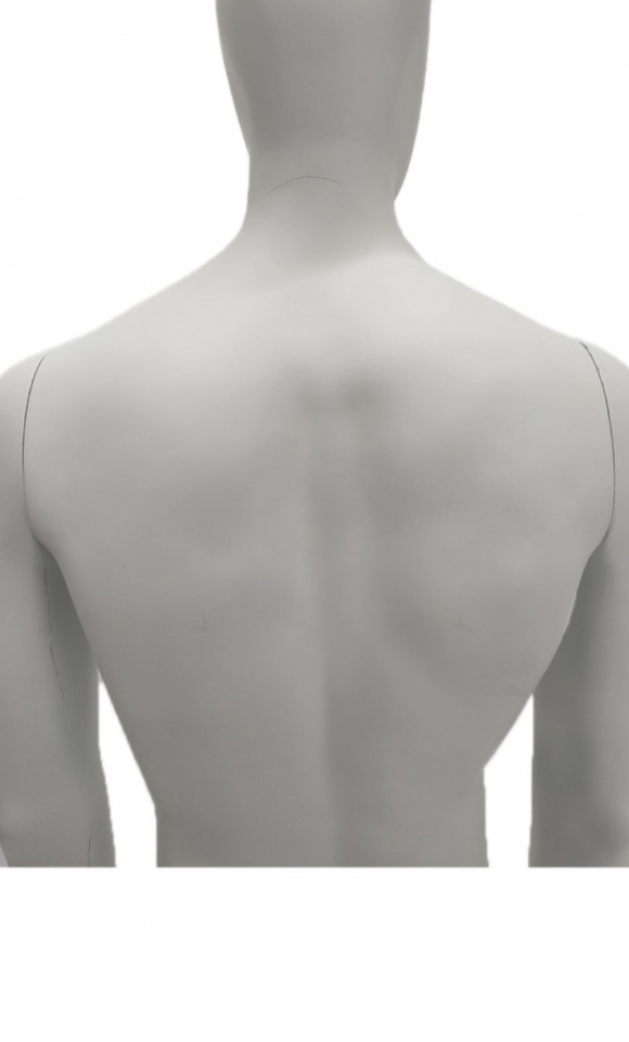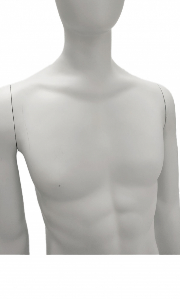 Manichino uomo realizzato in vetroresina dalla testa a uovo e dalla corporatura ben definita.