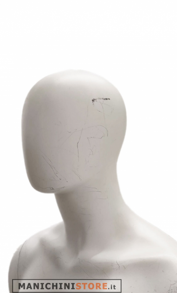 Manichino uomo dalla testa a uovo realizzato in vetroresina.