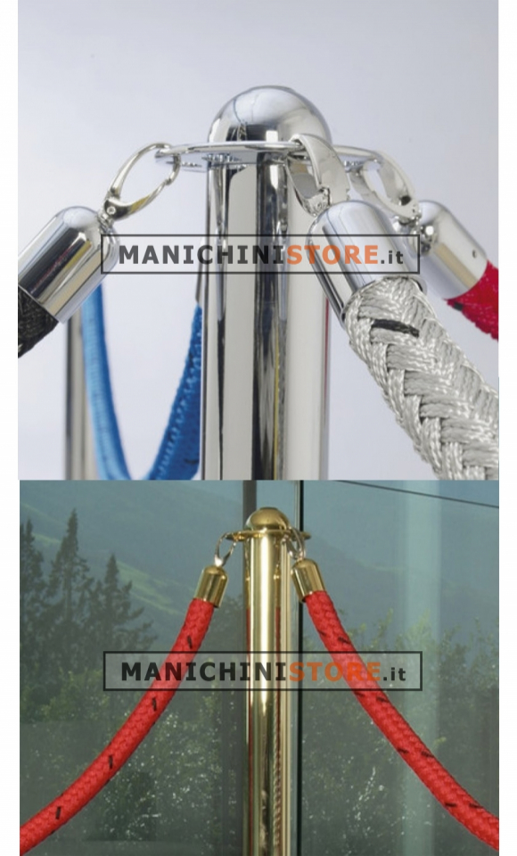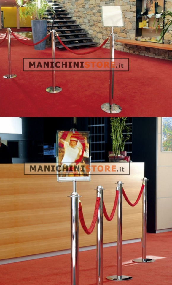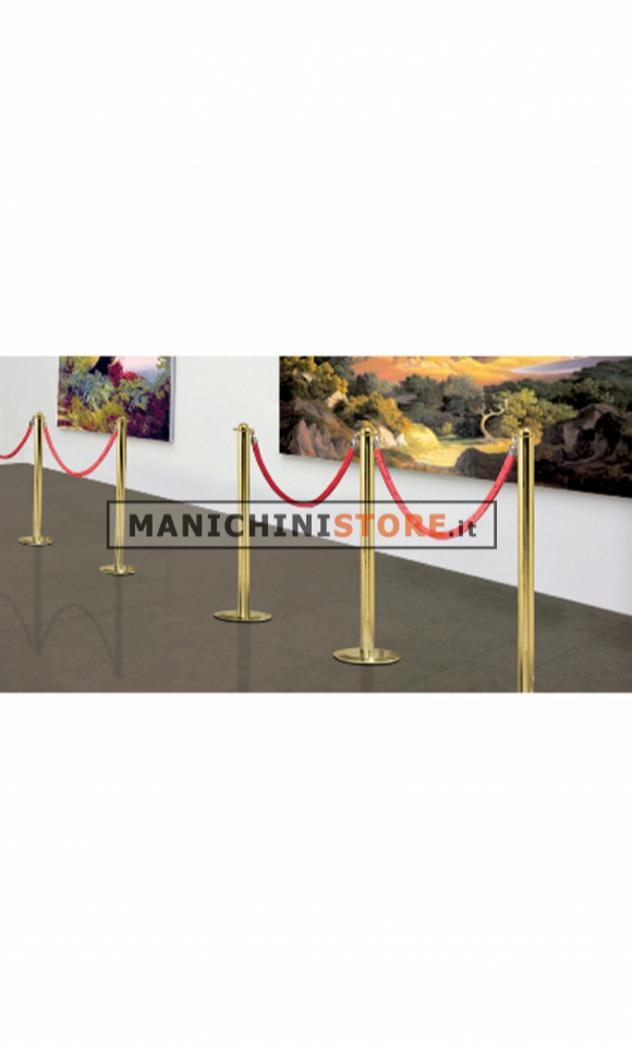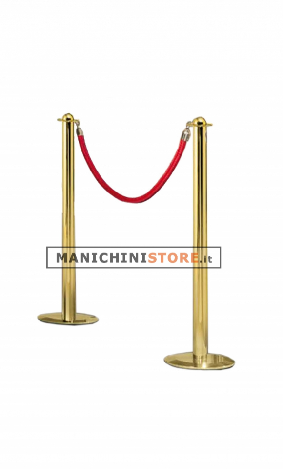 Elegante e raffinate colonnine segna percorso in color ottone lucido con corda rossa, adatta sia in spazi pubblici che privati ma prevalentemente in grandi spazi dove è presente un gran flusso di persone.