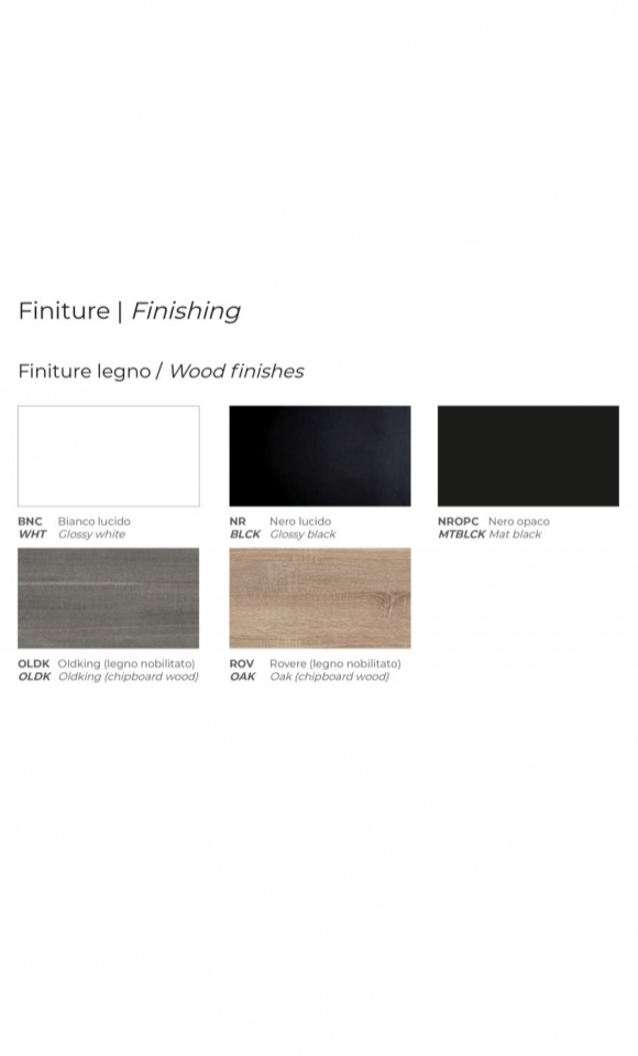 Inoltre è possibile richiedere il ripiano nelle seguenti colorazioni: bianco o nero lucido oppure in legno d'olmo.