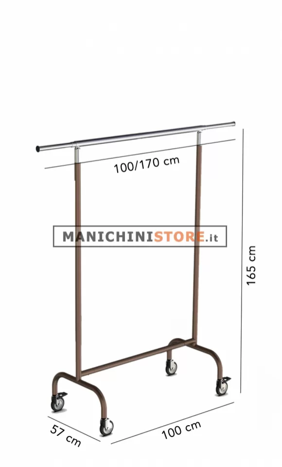 Lo stender misura 57 cm di profondità, la lunghezza può variare da 100 a 170 cm, mentre l'altezza è di 165cm.