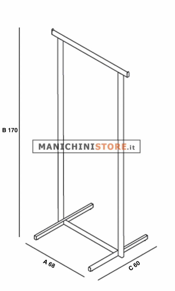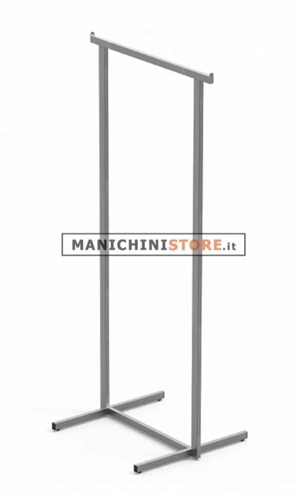 Elegante stender di fabbricazione Made in Italy realizzato in ferro grezzo verniciato trasparente con tubo a sezione quadrata, robusto e funzionale per l'esposizione dei vostri articoli.