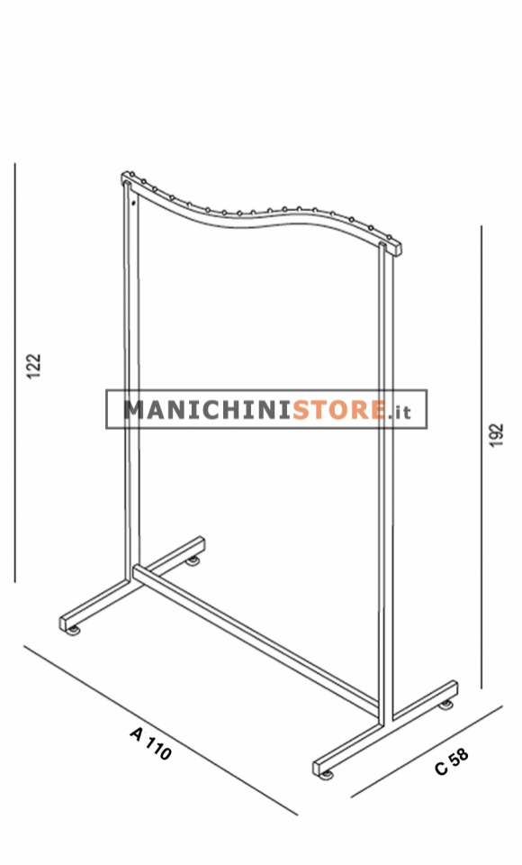 La straordinaria cura dei materiali utilizzati per la sua costruzione permette a Manichini Store di proporre qui uno stender vintage a onda di alto livello qualitativo. Con una lunghezza fissa di 110 cm, un’altezza dell’asta superiore di 192 cm e 122 di quella inferiore, oltre che una profondità di 58 cm, infine, l’articolo può assicurare una serie di vantaggi ai clienti che lo impiegano all’interno dei loro punti vendita, derivanti da caratteristiche come: